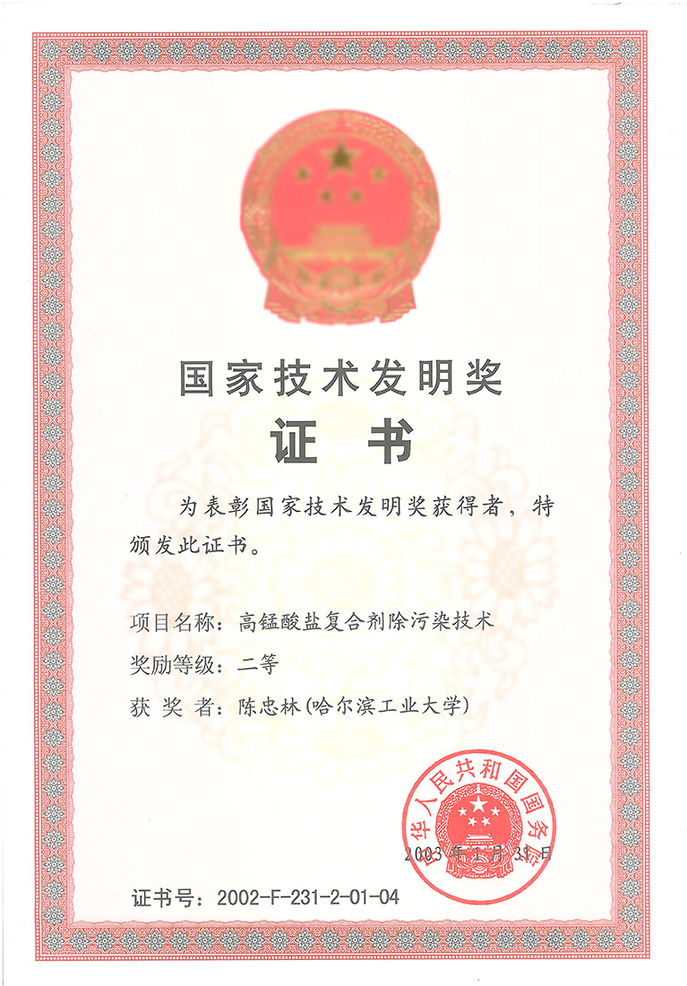国家技术发明奖证书
